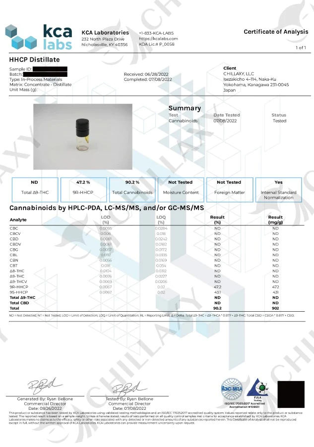 HHCPは、THCPを水素化した成分であり、THCの約30倍強力といわれています。本品には、THCO、HHCO、CBNOなどのアセテート成分は含まれません。麻薬取締部の輸入許可を取得したTHC非検出のカンナビノイドのみをブレンドしていますので、安心安全にご使用頂けます。